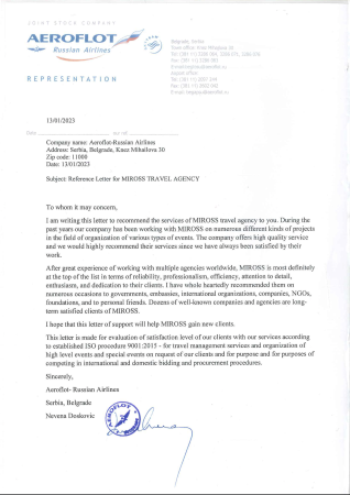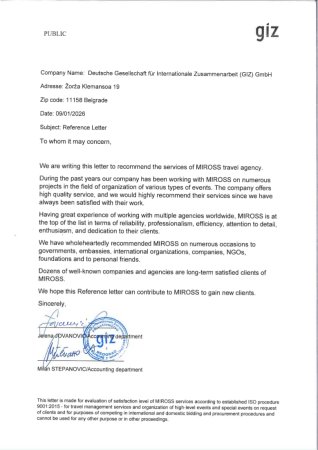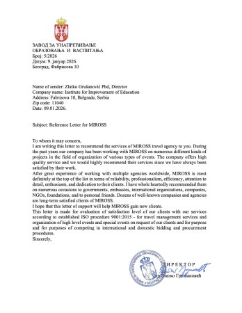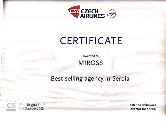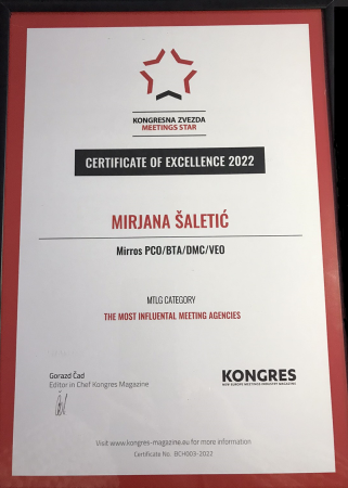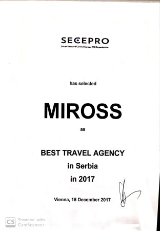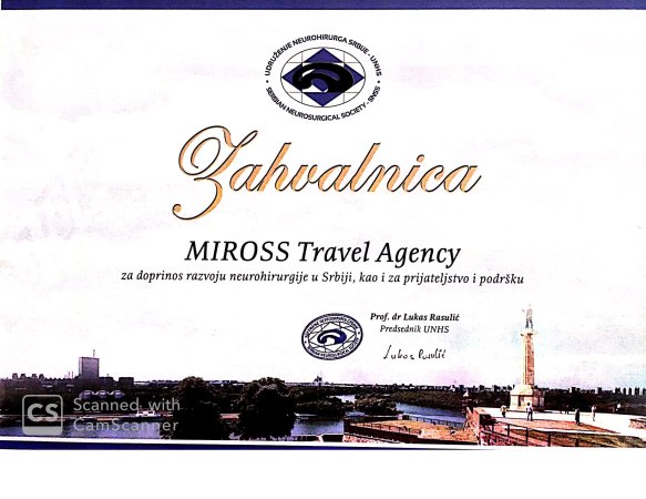 Za više od 30 godina postojanja Miross D.O.O je, kao vodeća agencija kongresnog turizma na tržištu Republike Srbije i Crne Gore, dobitnik više od 100 različitih nagrada i priznanja za svoj rad kao i doprinos razvoju tržišta. Stalnim, rigoroznim, procesom sertifikacije Miross redovno testira i potvrđuje kvalitet svojih poslovnih procesa, bezbednosti informacija i ukupnog poslovanja.