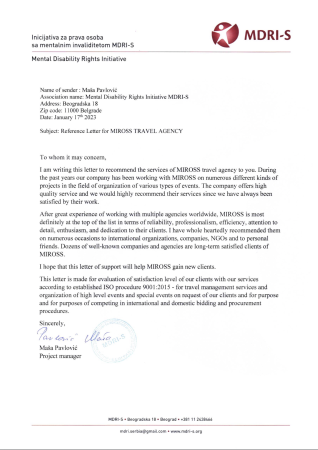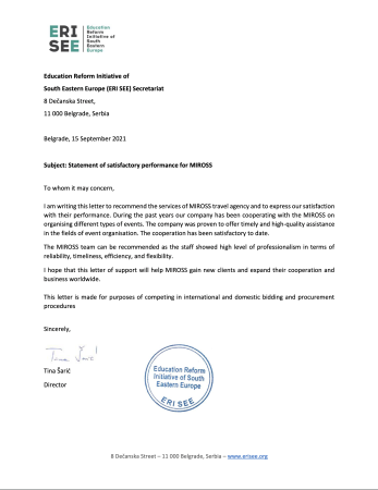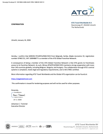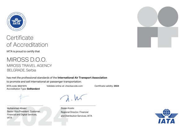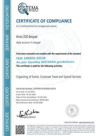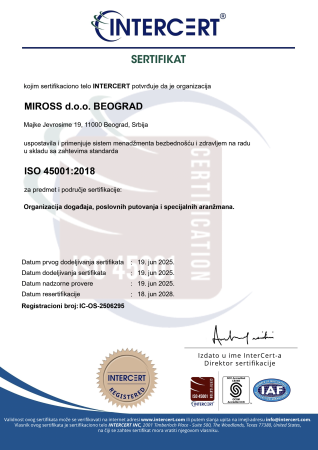 For more than 30 years now, Miross d.o.o. has been the leader in the Serbian and Montenegrin conference tourism market. The agency has been granted over 100 various awards for its work and contribution to the development of the market. In order to meet the eligibility requirements of rigorous certification processes, Miross has been testing regularly the quality of its business process, information safety and overall business operations.